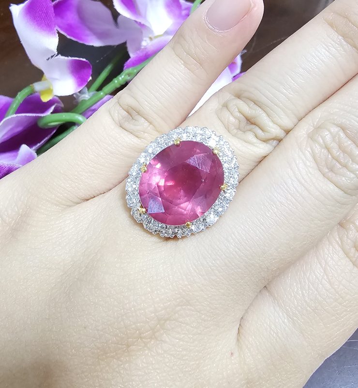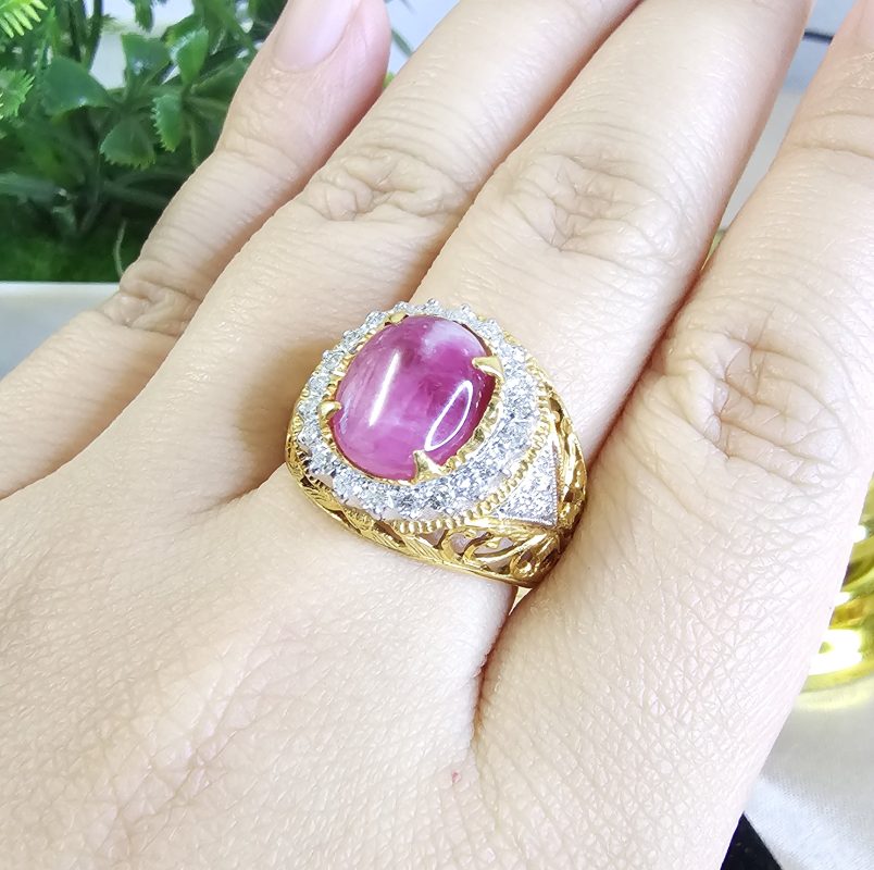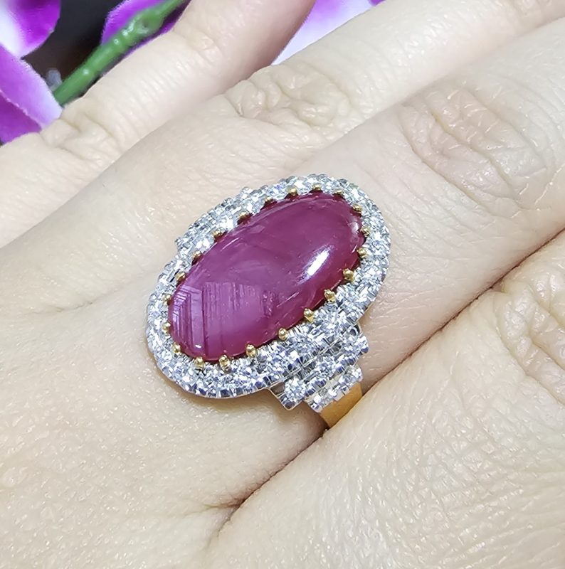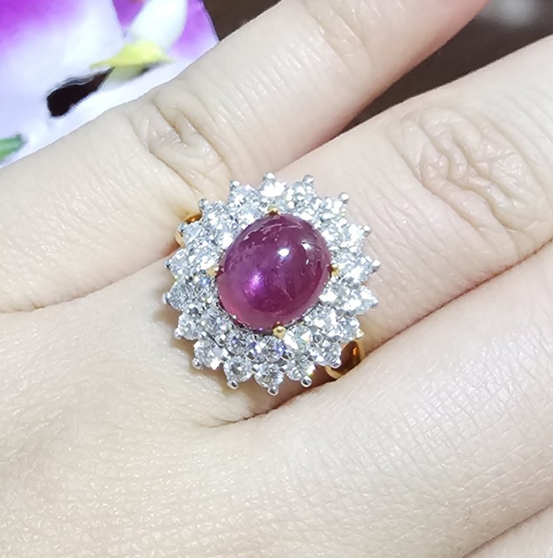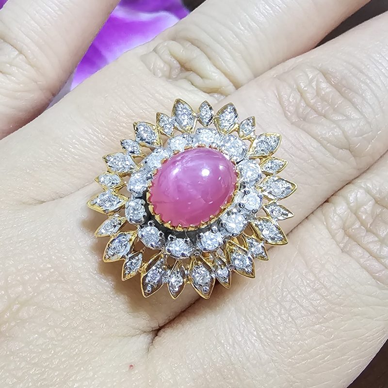ทั้งล้อมเพชร เม็ดเดี่ยวปัง ๆ  มีเหลือบ ทับทิมพม่า